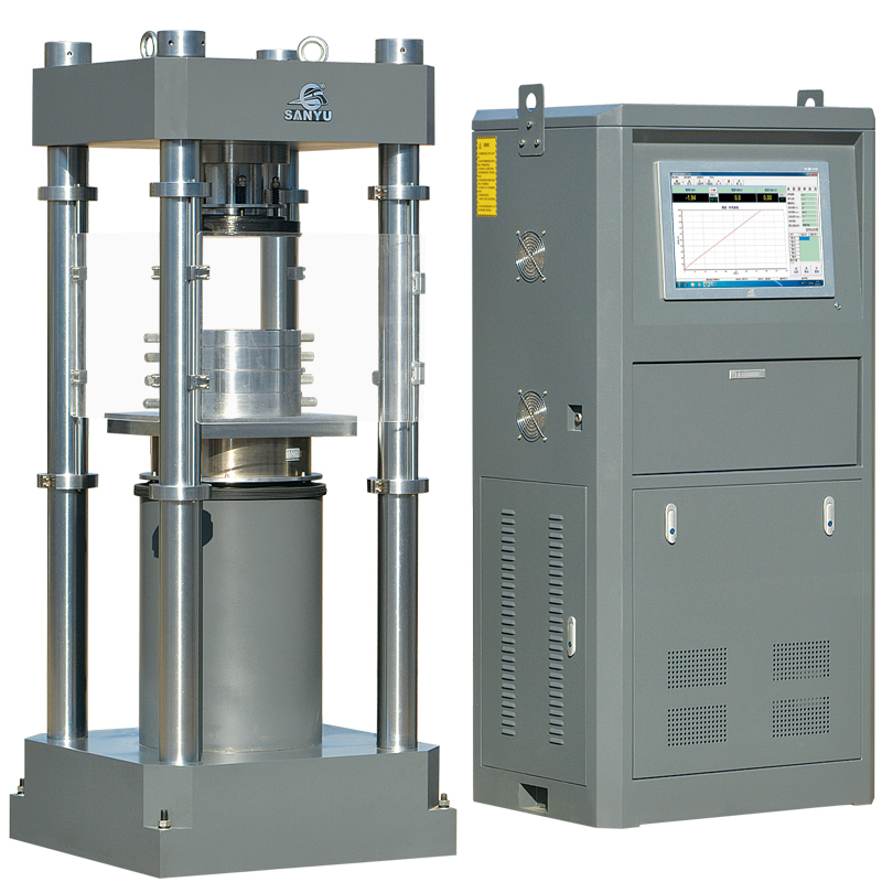 YAW-2000型電液伺服壓力試驗(yàn)機(jī)是采用了液壓動(dòng)力源驅(qū)動(dòng),電液伺服控制技術(shù),計(jì)算機(jī)數(shù)據(jù)采集處理,可實(shí)現(xiàn)閉環(huán)控制及自動(dòng)檢測(cè)的高精度材料試驗(yàn)設(shè)備,其由試驗(yàn)主機(jī)、油源(液壓動(dòng)力源)、測(cè)控系統(tǒng)、試驗(yàn)器具四部分組成,試驗(yàn)力2000kN,試驗(yàn)機(jī)準(zhǔn)確度等級(jí)優(yōu)于1級(jí)。